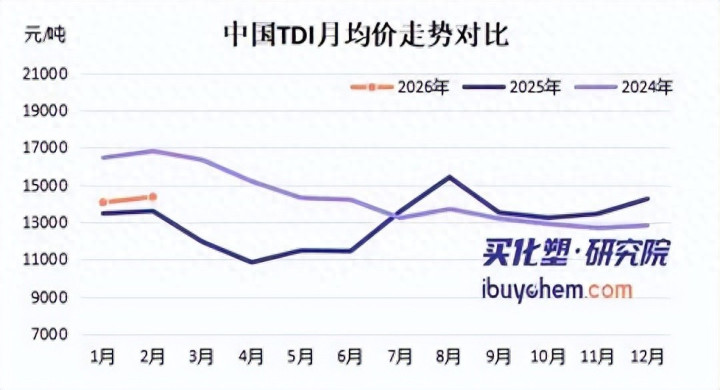 紧随其后,科思创于2月19日宣布,自2026年3月1日起对北美所有细分市场的MDI产品涨价0.10美元/磅(折合220美元/吨);2月25日,巴斯夫也加入提价阵营,上调东盟地区MDI产品价格200美元/吨。值得注意的是,巴斯夫2月初已宣布其TDI产品在亚太(不含中国大陆)及MEAF地区上调200美元/吨,涨幅高达11%。